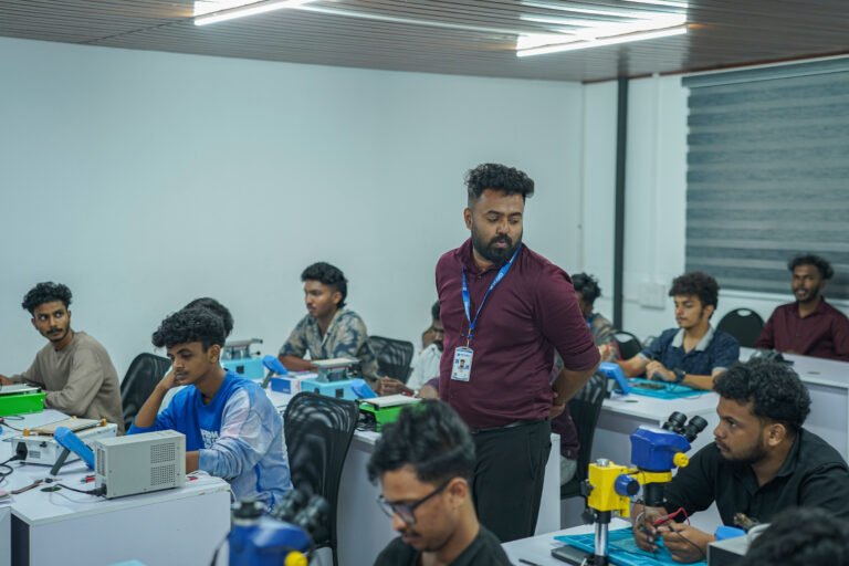 Our knowledgeable instructors walk you through actual repair situations so you can learn theory and get hands-on practice. Choosing Nexgen means joining a top-ranking institute in Kerala that focuses not just on training but on your career growth. Along with technical skills, we provide guidance for job placements and business opportunities, helping you turn your learning into a successful and profitable career. Nexgen guarantees that you train using the same instruments and state-of-the-art labs that are used in expert mobile repair centers. With the most economical training costs in Kerala, our course is designed to cover every facet of mobile repair, including hardware repair, software debugging, and IC-level service. With Nexgen Institute, you can invest in your future now and confidently enter a field that offers plenty of opportunity, stability, and high demand: mobile repair. Don’t let money stop you from pursuing your dream job; begin your adventure with Kerala’s top mobile repair centere